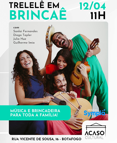 O grupo Trelelê apresenta o show Brincaê, espetáculo musical pensado para crianças e suas famílias, unindo canções, brincadeiras e elementos da cultura popular brasileira em uma experiência interativa e cheia de imaginação. No palco, música e aprendizado se misturam em um ambiente lúdico que convida o público a cantar, brincar e participar..